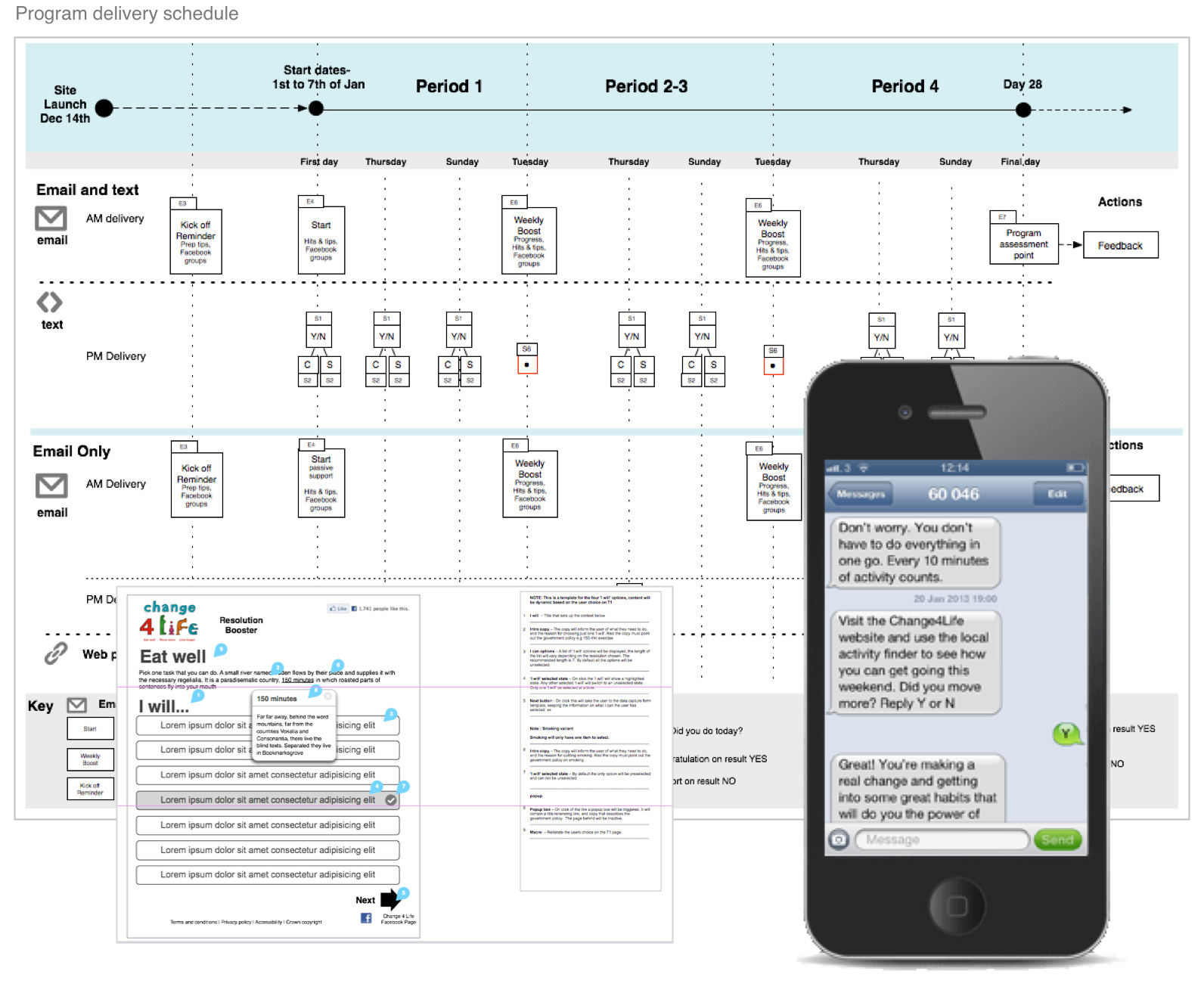 This was an interesting project because the site was based on a key behavioural insight; that it takes 28 days to form a new habit. For a new habit to become routine, the tasks set needed to be small and repeated daily. The solution was to create a microsite for the new year resolution period, that helped people change their behaviour in a positive way. We achieved this by creating a very simple site that allows the user to choose an activity or habit they want to improve for instance; eating more healthily or exercising more, and then allowed them to select a small task to do this . The main part of the campaign was the support through the 28 day programme through email and SMS. The support messages asked the user to respond back with how they were doing, we then gave a positive support message.At the end of every week, a progress roundup was sent again with a supportive message.