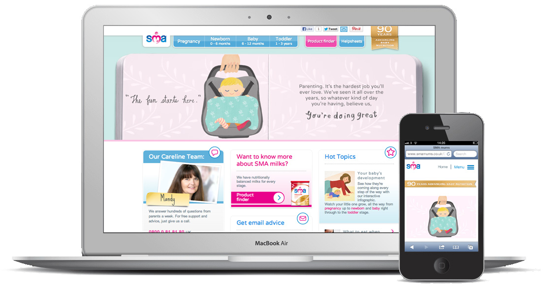 The site's solution was a total rebuild, focusing on SMA's new proposition of being Mums ally. In order to fit in with a mum's life, the site needed to be accessible on mobile and desktop devices. The initial launch was as a light site, that will expand with features and content in the near future.